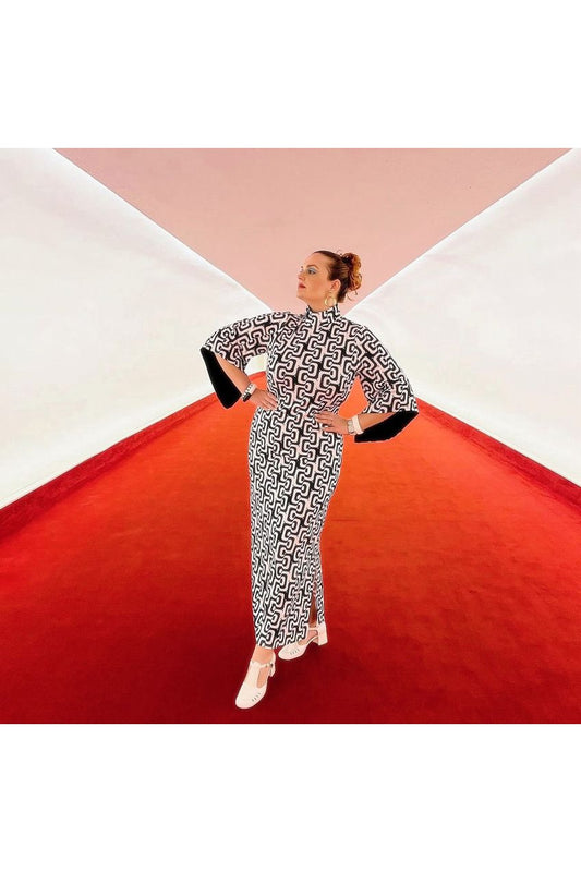 Mod About You 60's Abstract Dress with Dramatic Sleeves (XS - 3XL)