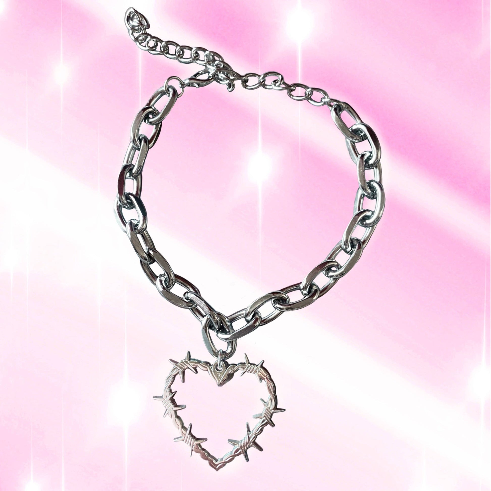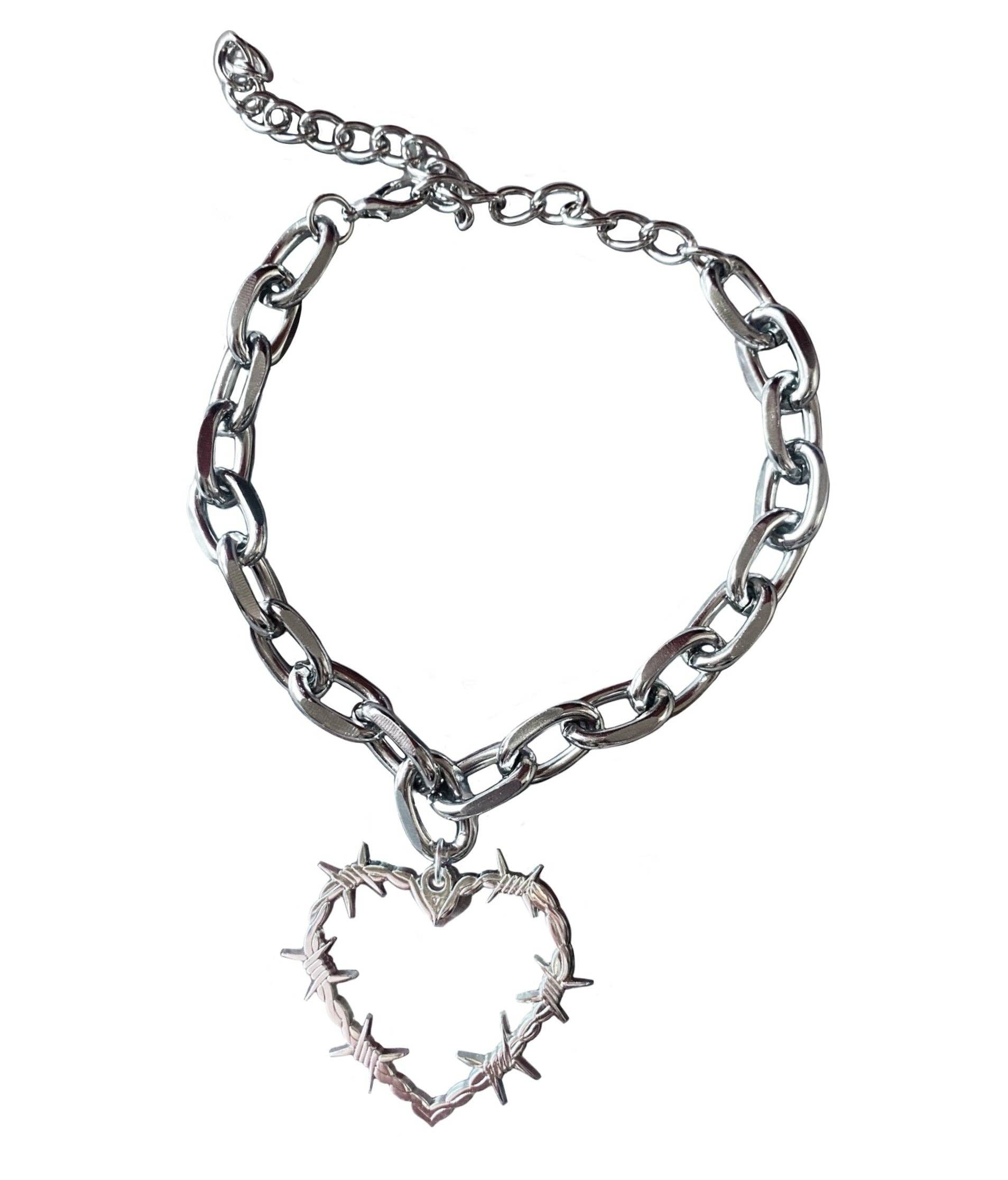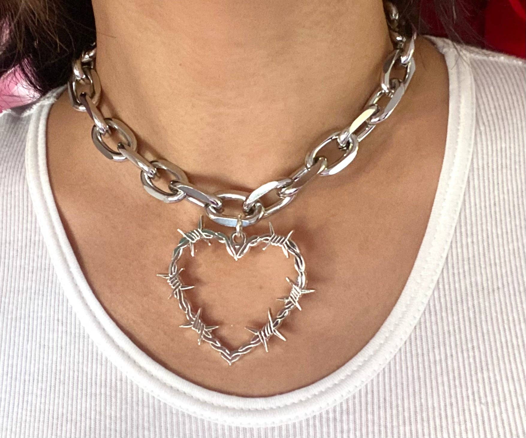 The Barbwire Heart Chain Choker rocks an adjustable aluminum alloy chain with a 3-inch barbwire heart charm that’s sharp, bold, and ready to stir up some trouble. With an 11.8-inch chain plus a 6.29-inch extension, it’s the perfect mix of fierce and flexible—because edgy never goes out of style!