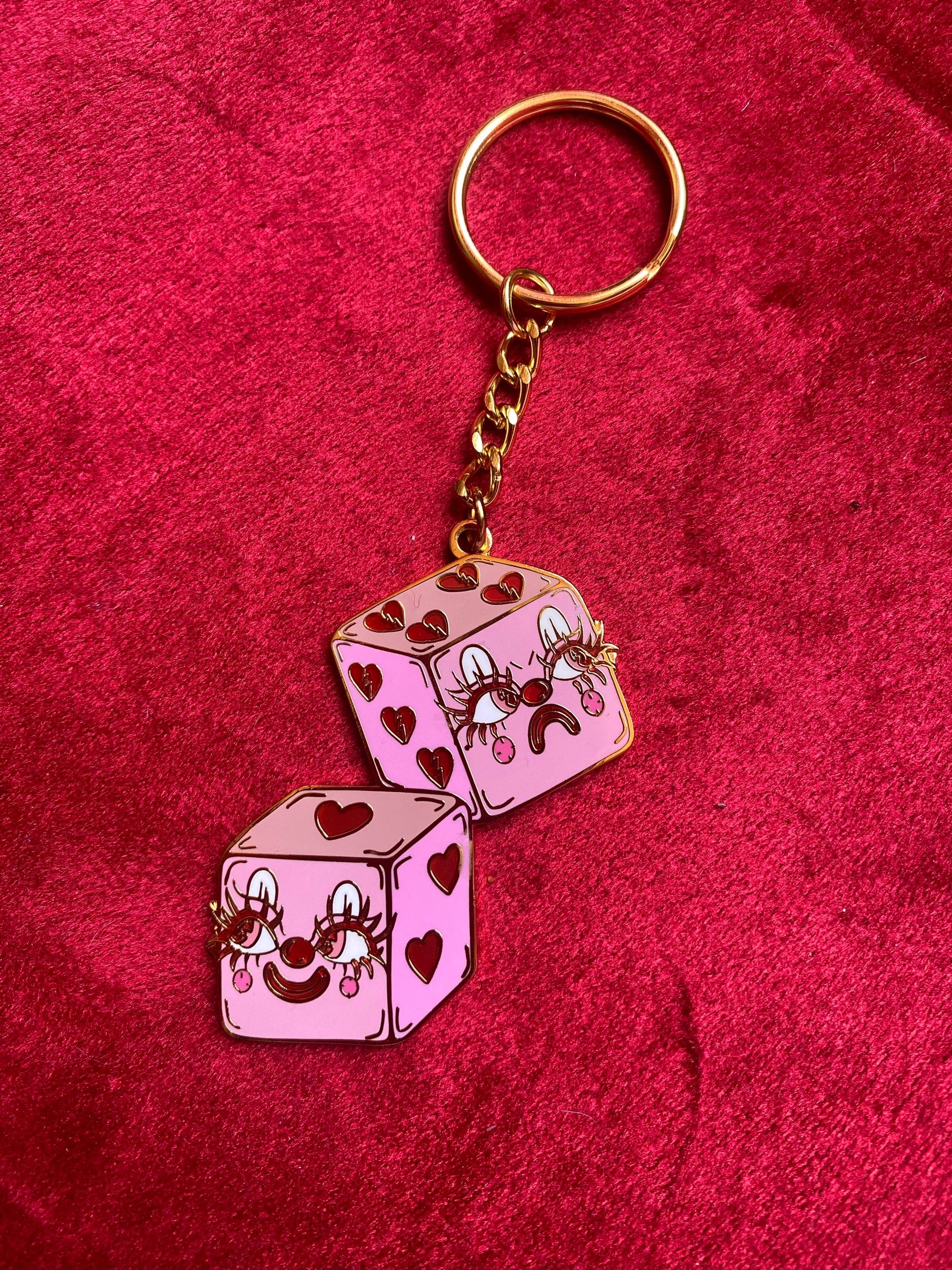 Cutie Heart Dice Gold Plated Keychain