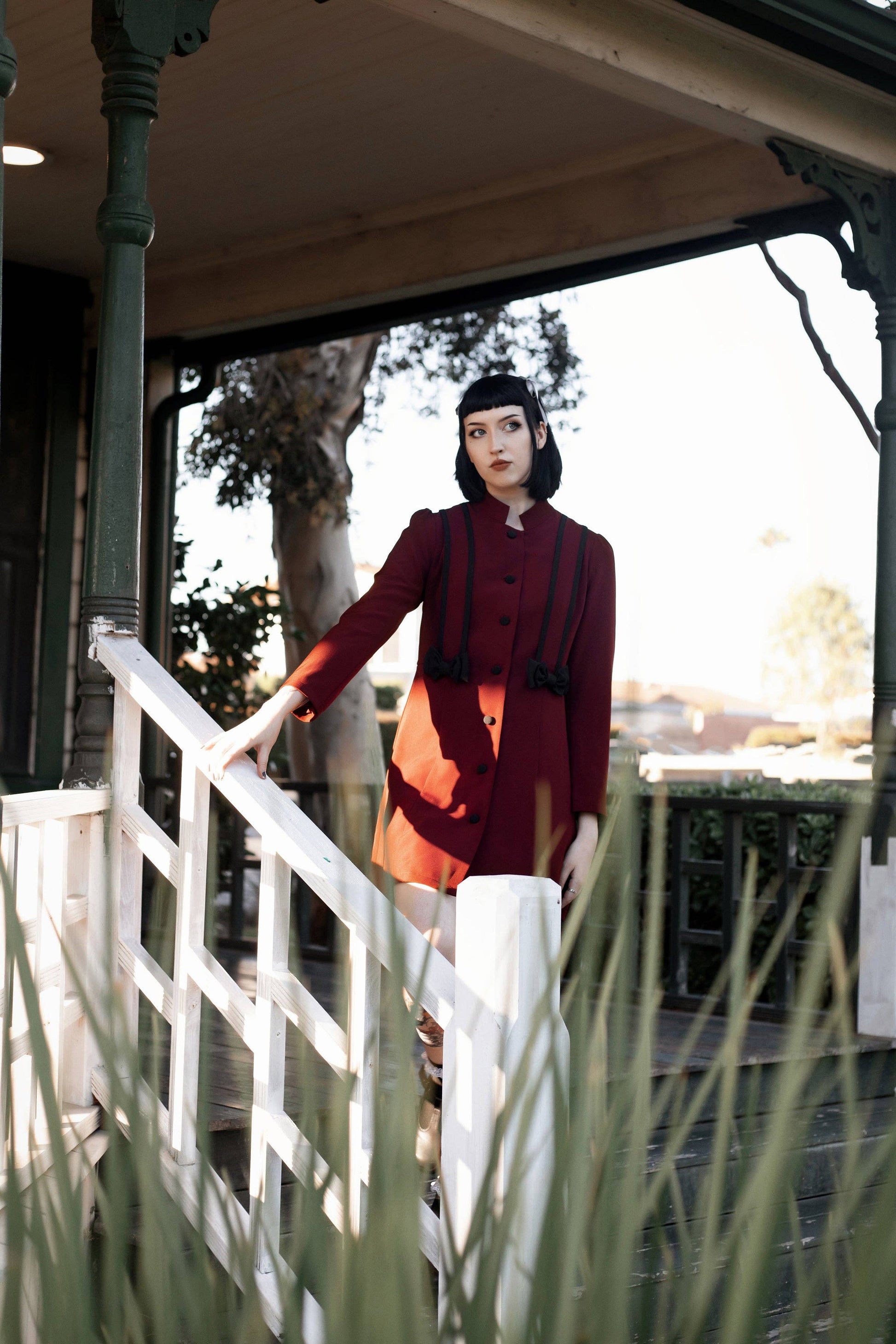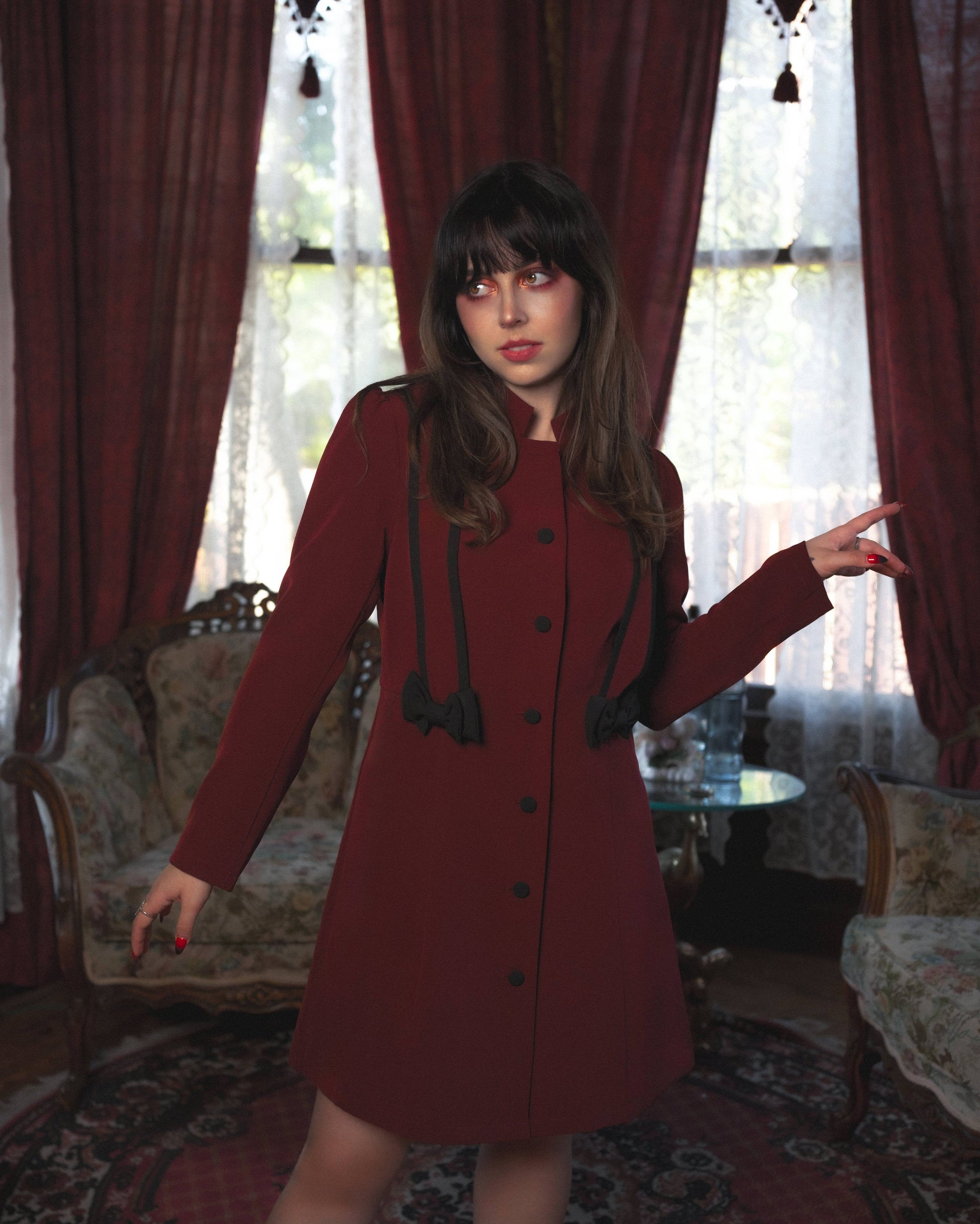 Let out your inner thrill-seeker with the "Daredevil" Collared Dress/Coat from Lively Ghosts! Crafted from a cozy polyester-spandex mix, this multi-functional dress/overcoat lets you mix up your look. Featuring a customizable pull-tab waist and a striking crimson and black pattern, you'll radiate boldness and self-assurance wherever you go.