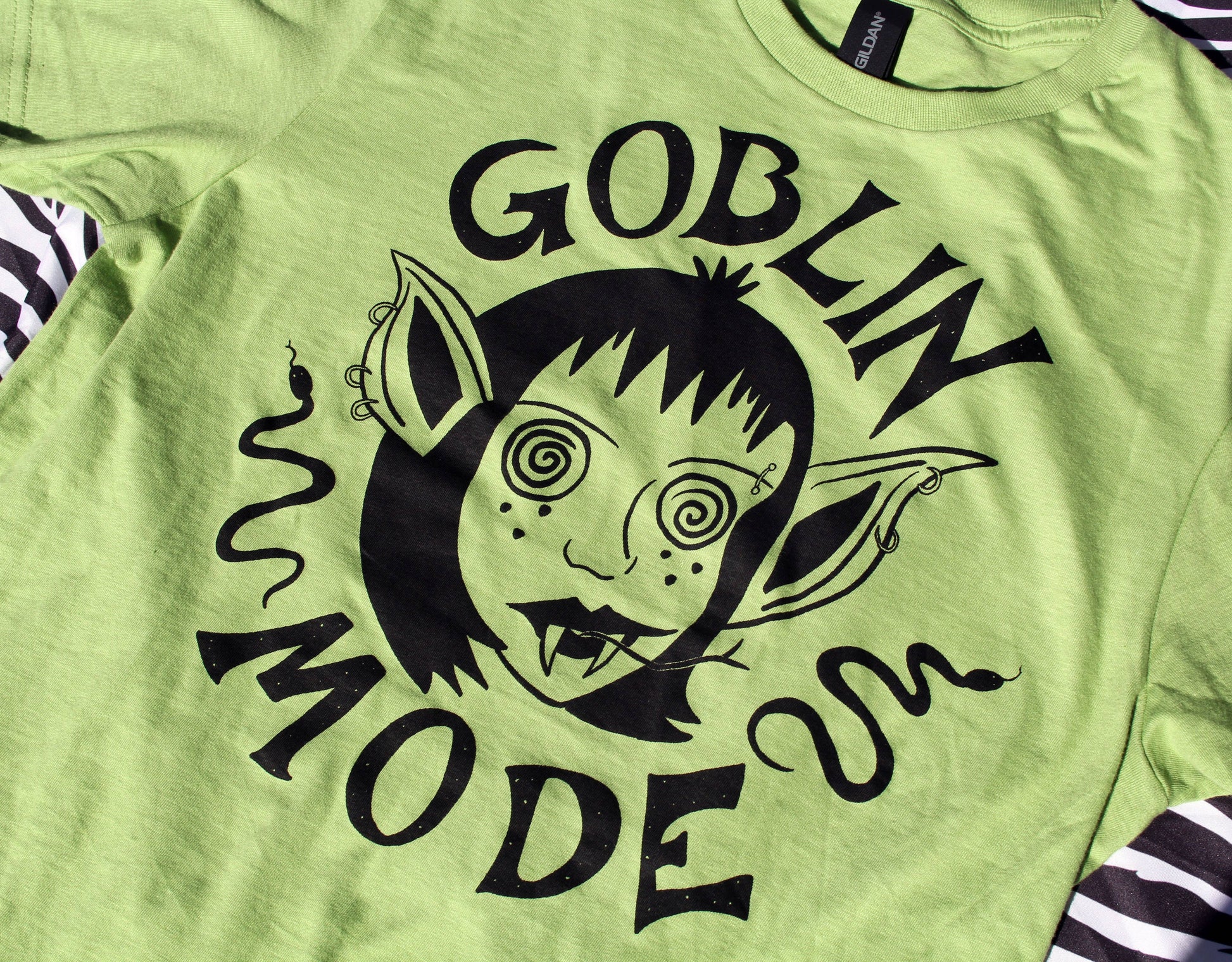 Time to embrace your inner feral being and go full goblin mode! Every shirt is hand screen printed by Midge Blitz personally. This ultra-soft unisex tee is crafted from 100% combed and ring-spun cotton for maximum comfort. Made in ethical WRAP-certified factories and available in unisex sizes to fit all goblin types!
