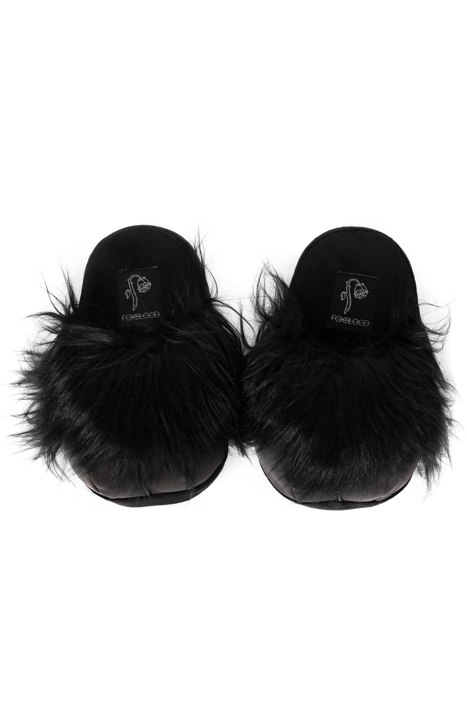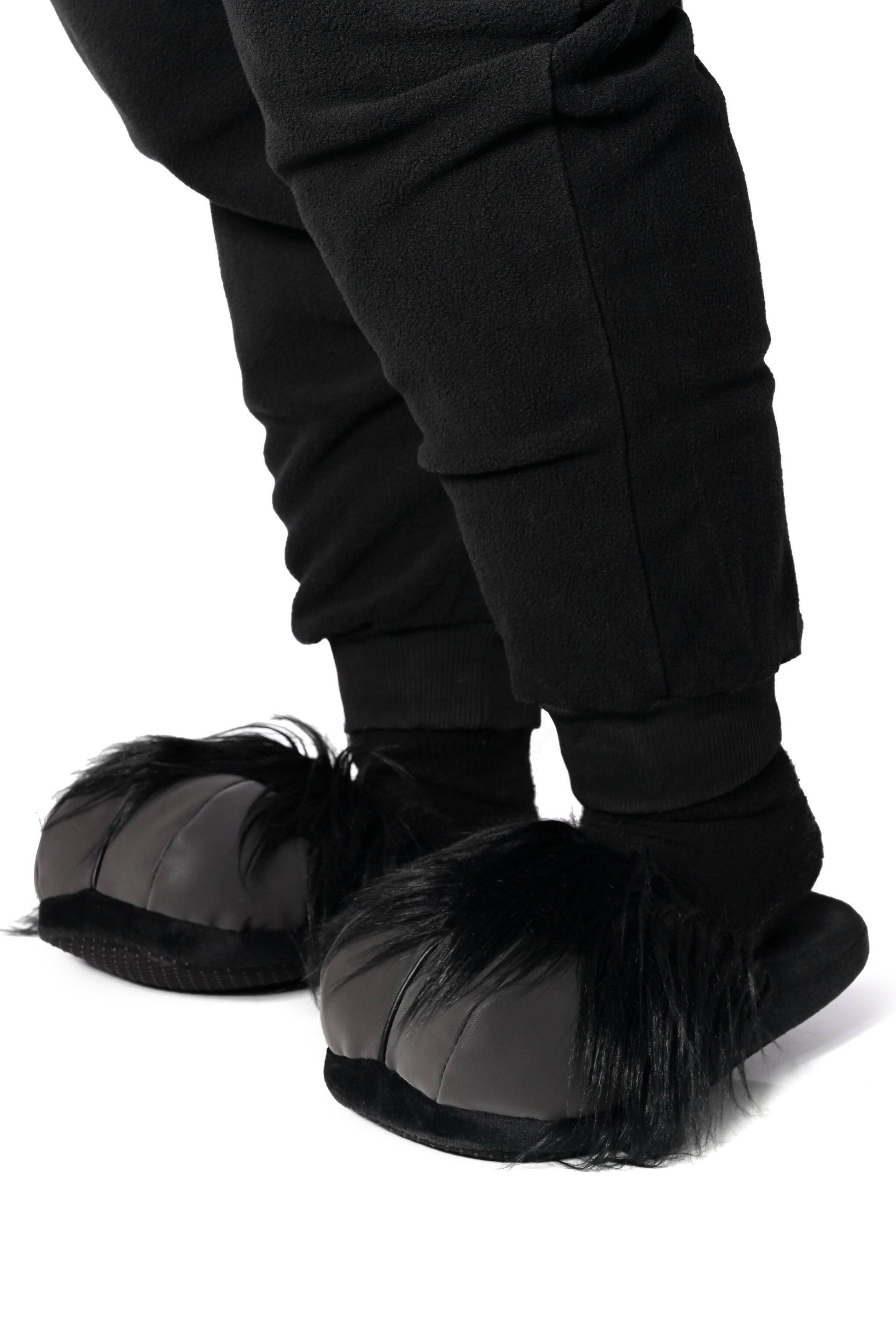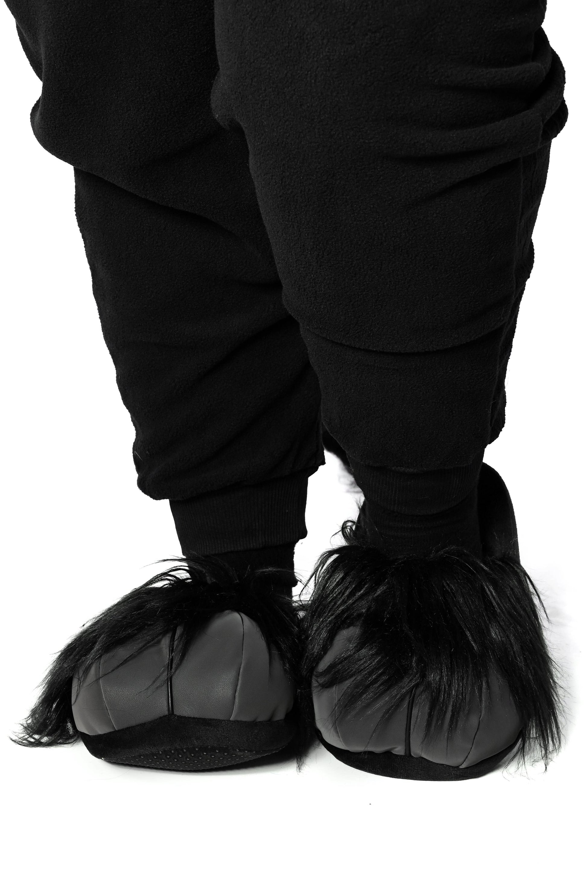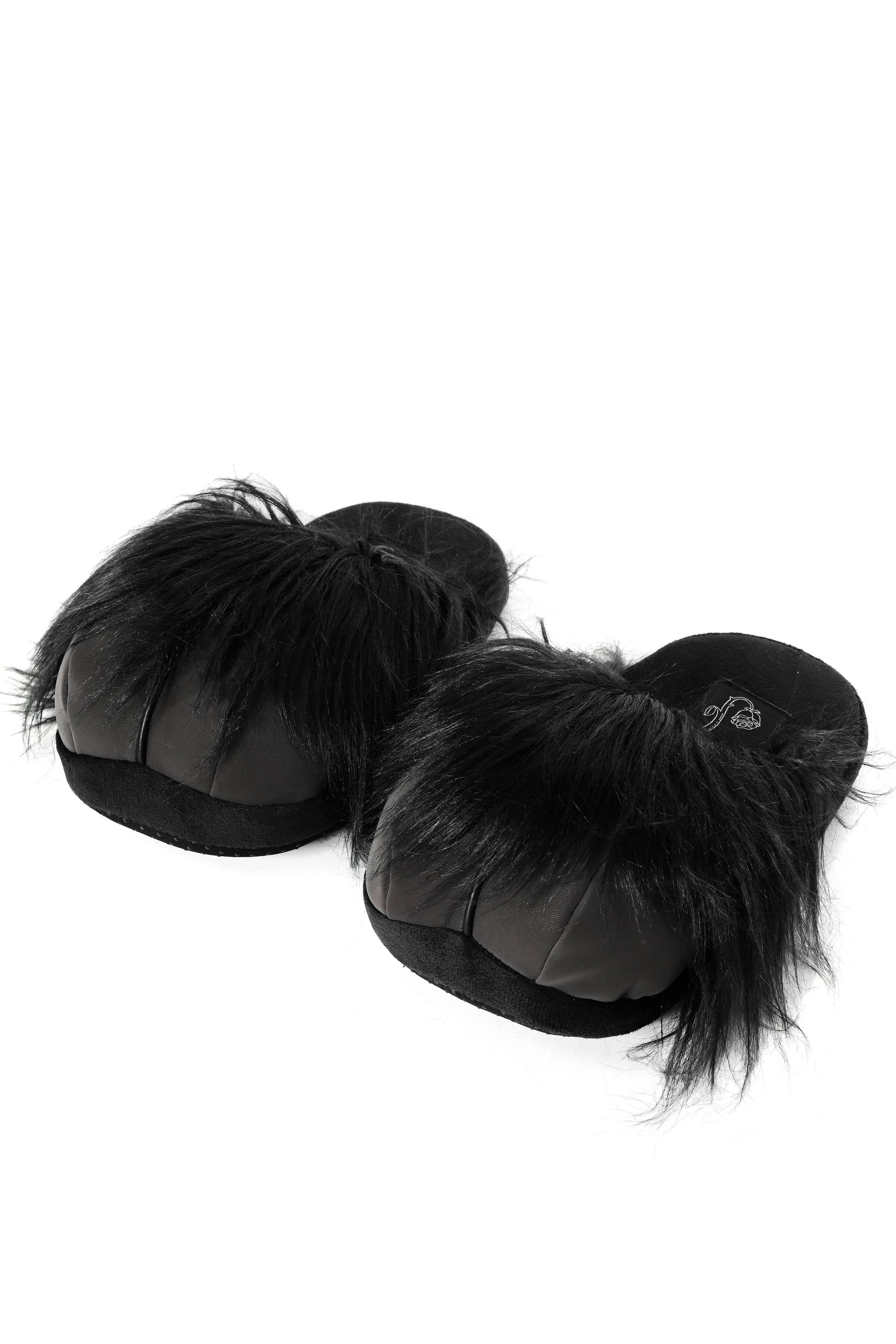 Super plush and comfy Krampus Hoof slippers! Faux fur slippers with a grey soft matte PU toe and black faux fur on top. 100% Vegan Length from front to end Small: 9.5 inches Medium: 9.75 inches Large: 10 inches XL: 11 inches