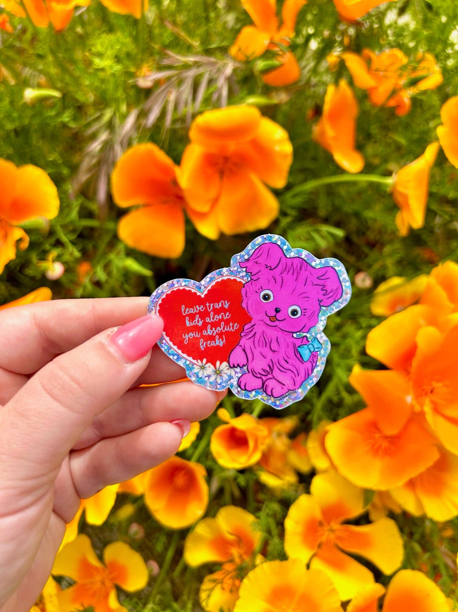 Inspired by the best vintage tchotchkes, this little pup is here to deliver a timeless message: leave trans kids the fuck alone!!