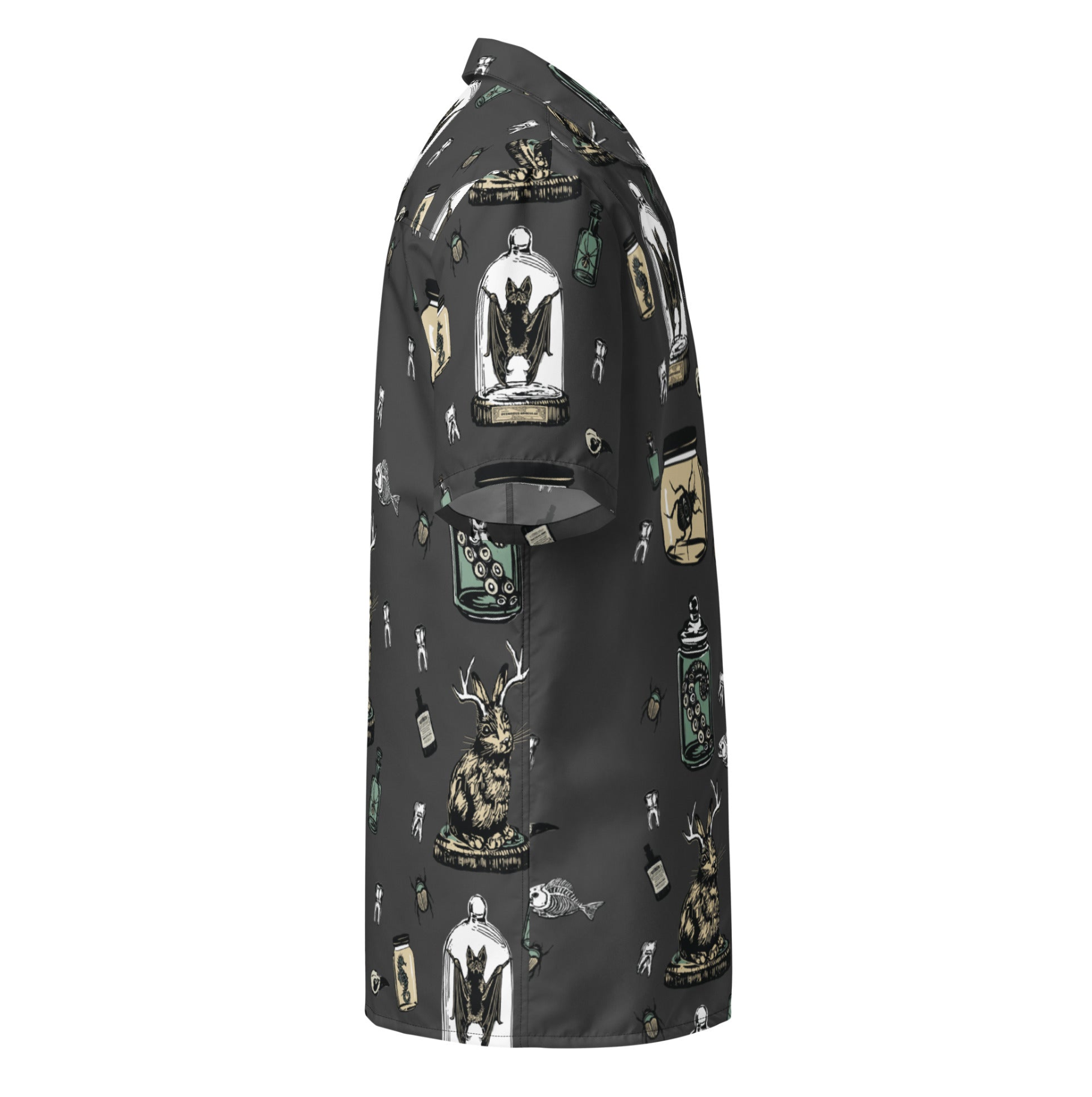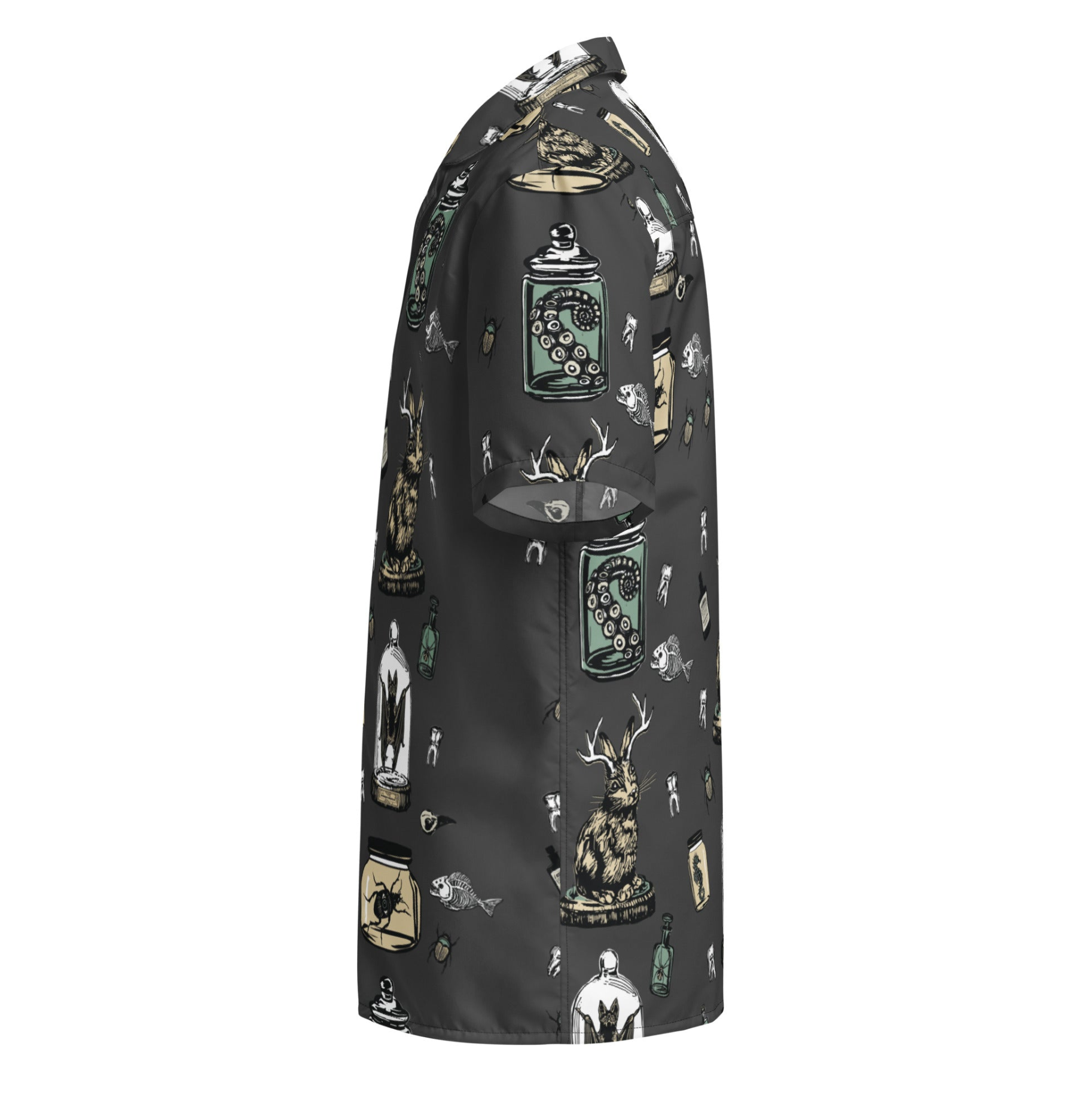 Calling all oddities fans! Our Rare Specimens Oddities print button-down shirt is tailor-made for those who appreciate the wonderfully weird. Made with 65% recycled polyester and 35% polyester, it’s breathable, moisture-wicking, and features an oversized fit for maximum comfort and quirky style.