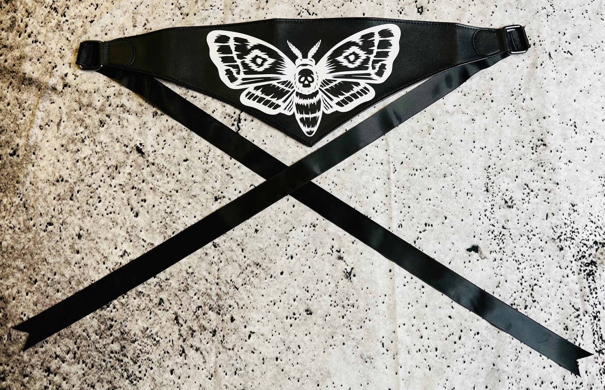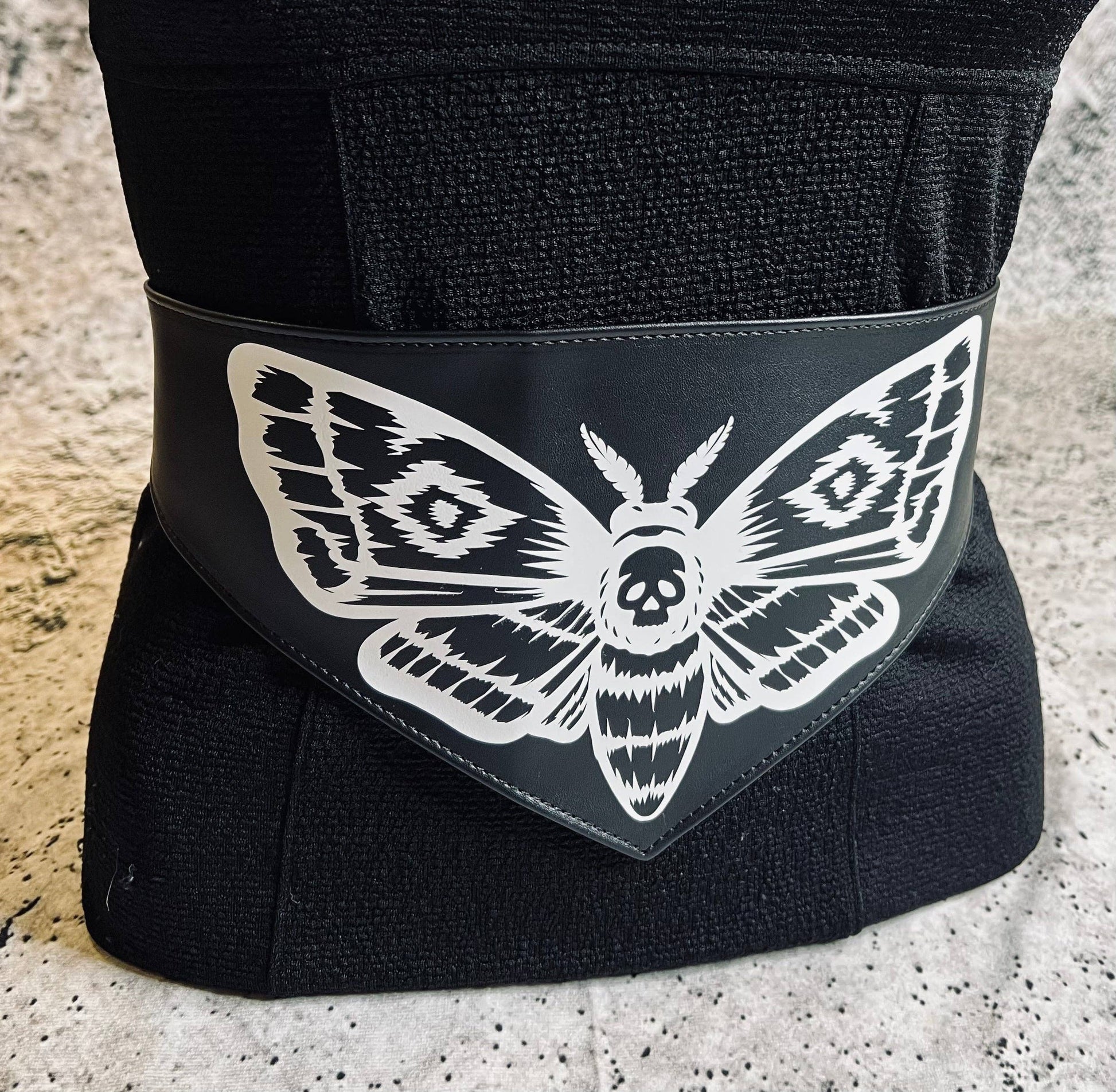Meet the Death Moth in GOLD, the star of Witchwood’s revamped vegan leather belt collection! These silky-soft tie belts are the ultimate outfit upgrade. Wrap it around your natural waist, hips, neck, or even use it as a headband—because why limit yourself? This cult favorite fits up to a 55" waist, measures 5" wide at its widest point, and stretches 69" long. Wear it pointy side up or down, with ribbon ties at the back for that perfect finishing touch. Who knew vegan leather could be this fun and versatile?