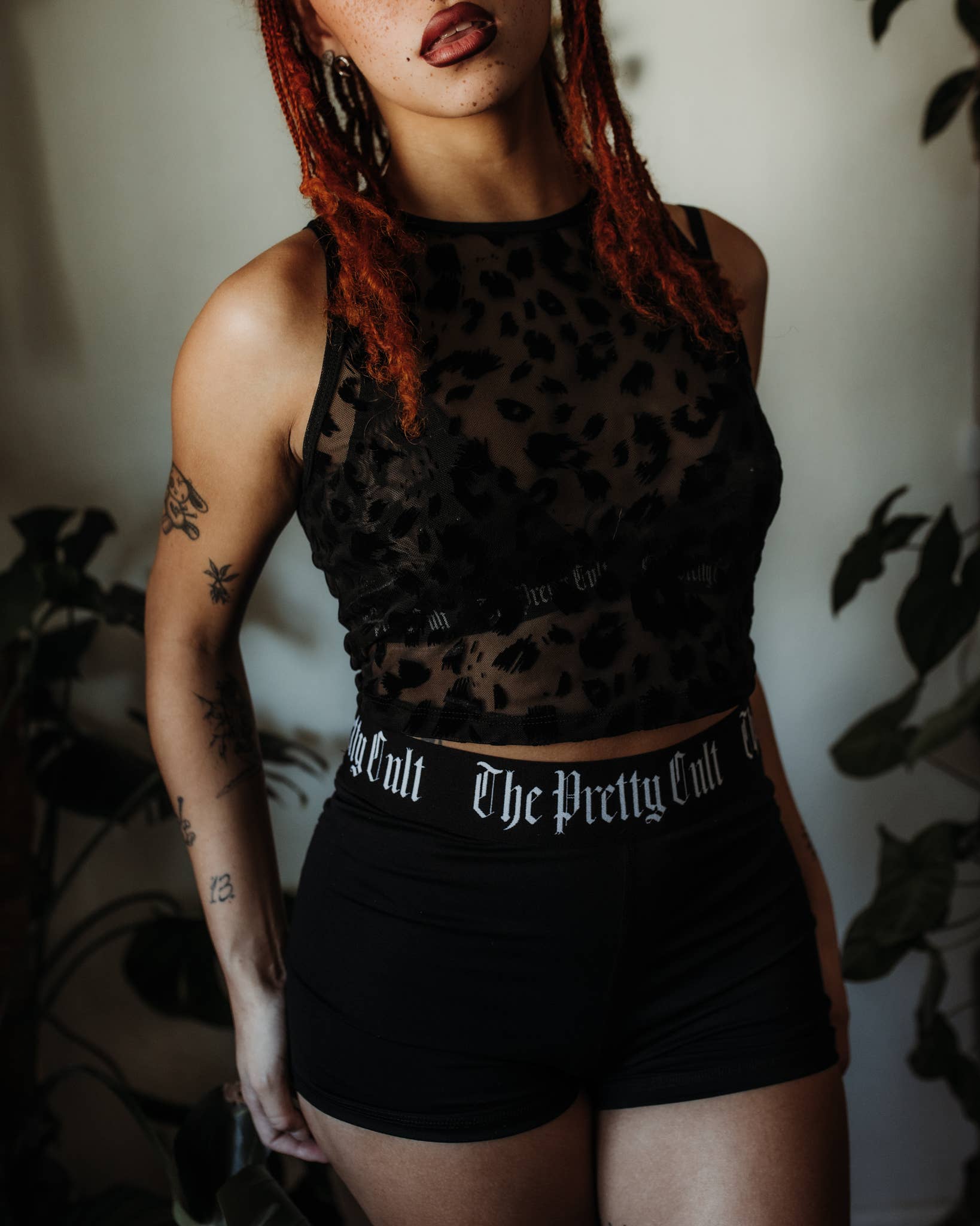 Unleash your inner wild child with the fan-favorite Wild Heart Crop! This sassy little number features eye-catching black leopard print on super stretchy mesh fabric. Perfectly fitted to flatter your figure while keeping you comfy all day long. The soft, flexible material moves with you, making this crop top your new go-to piece for any adventure!